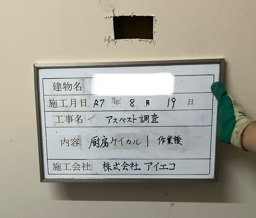内装解体を行う前に事前に壁、天井、床、等のアスベスト調査を行います。